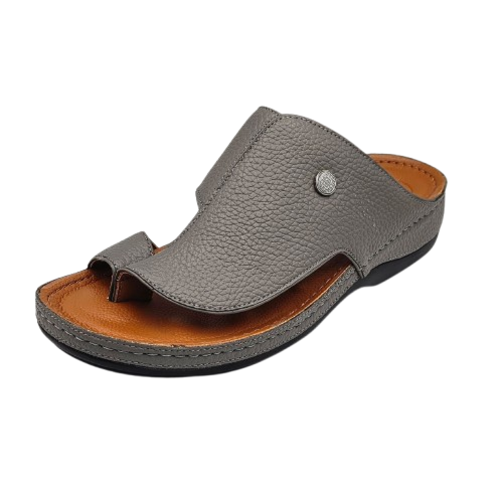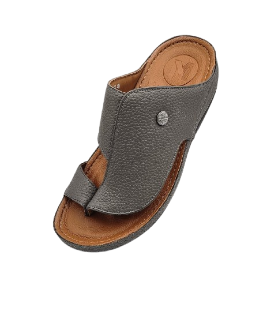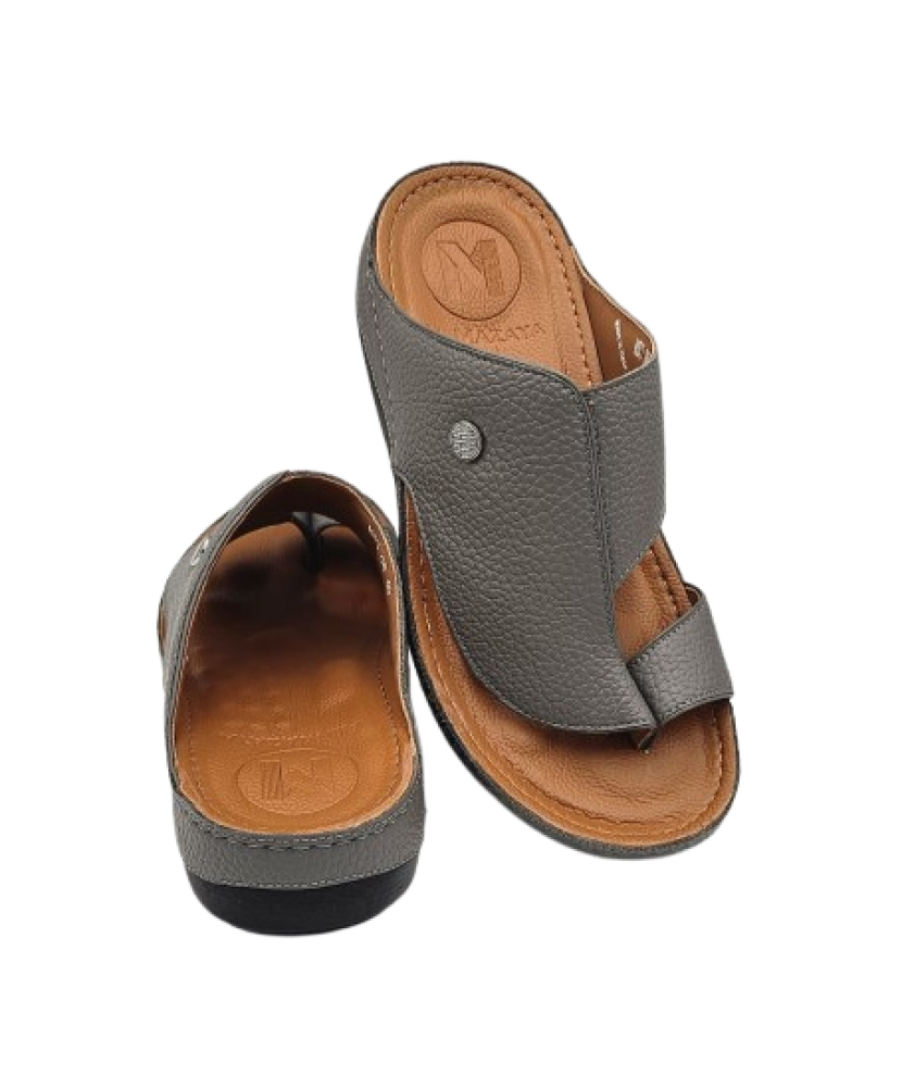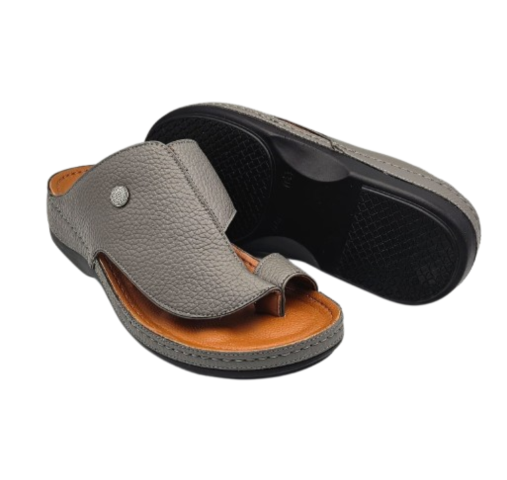 نعال ايطالي خليجي رمادي يوفر راحة استثنائية بفضل الجلد الطبيعي عالي الجودة وتقنية أرضية المناطق الخمس الألمانية، مما يمنحك دعماً مثالياً وثباتاً متكاملاً في جميع الأوقات.