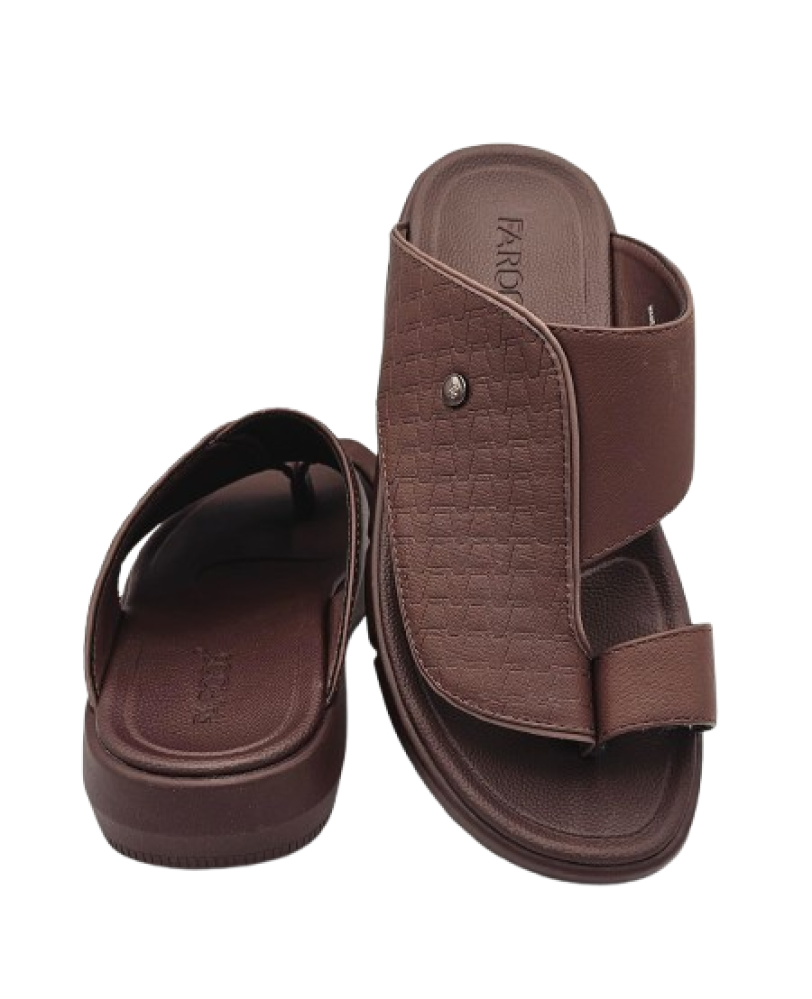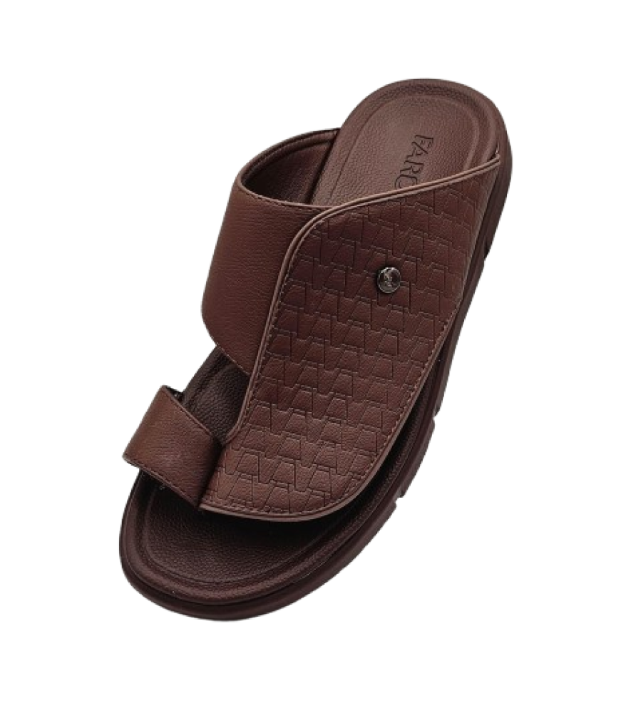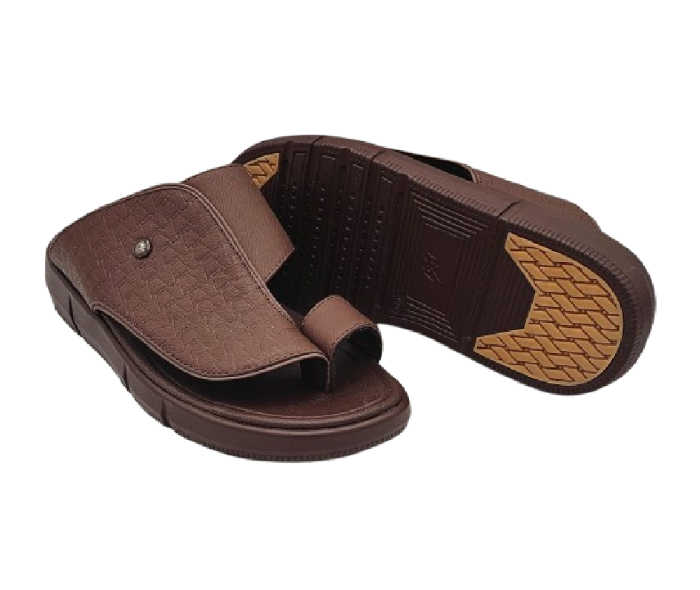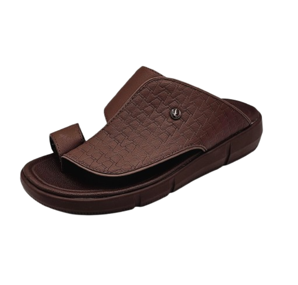نعال خليجي فاخر - طبي بني غامق بتصميم يعكس الأصالة الخليجية والفخامة في آنٍ واحد. اللون البني الغامق يضفي طابعًا راقٍ وعملي، مع تصميم طبي يوفّر أقصى درجات الراحة أثناء المشي والوقوف الطويل.