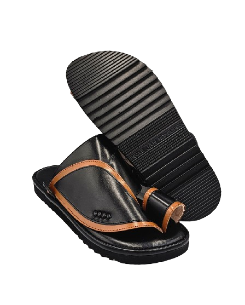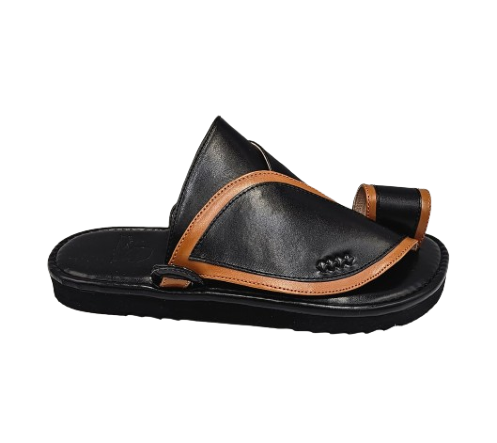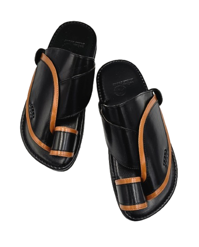 النعال الشرقي الأسود ذو الخطوط الذهبية هو قطعة فنية تجمع بين الأصالة ومثالي لإضفاء لمسة من الفخامة على أي إطلالة. يتميز هذا النعال بتصميمه العريق والمريح، مما يجعله مناسبًا لارتدائه في المناسبات الخاصة أو حتى للاستخدام اليومي.