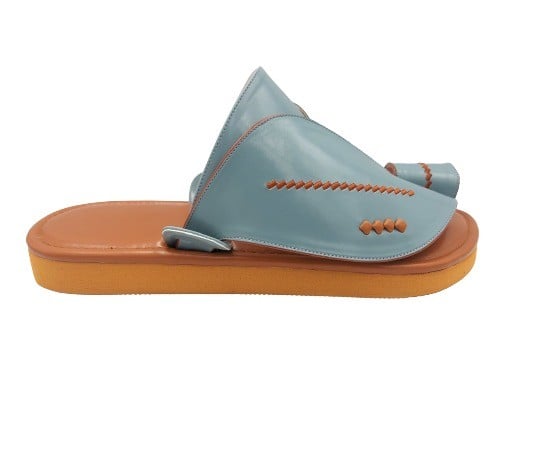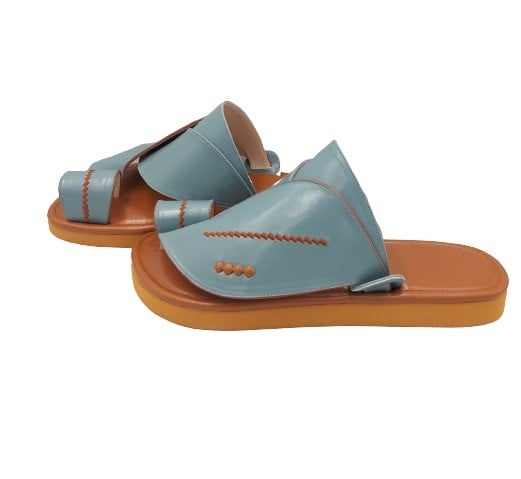 مواصفات حذاء رجالي شرقي مطرز جلد طبيعي لون سماوي لامع :
